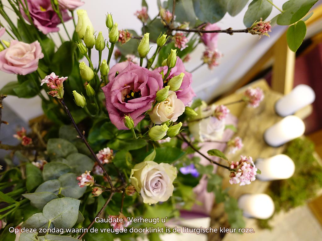 Schikking met Pasen 2021 ![]() Schikking op Goede Vrijdag 2021 ![]() ![]() Schikking met Kerst 2020 ![]() Klik op de foto voor een video van de bloemschikking. In den beginne werd het woord gesproken dat was bij God en aan Hemzelf gelijk, waarin het leven als een licht zou schijnen opdat het zwarte duister zou verdwijnen en mensen zicht geeft op het grote koninkrijk: dat woord woont onder ons onafgebroken. Gezang 455 vers 6 uit het Liedboek 'zingen en bidden in huis en kerk' (2013) ![]() ![]() ![]() ![]() ![]() ![]() Schikking op eeuwigheidszondag 22 november 2020. ![]() Bekijk hier een video van de bloemschikking in de Vredeskerk. In deze schikking zijn woestijn en bange nacht uitgebeeld met het zwarte doek, de donkere bloemen, waarvan sommigen geknakt en gebroken. Maar Hij zendt Zijn engelen. Zij zullen je op handen dragen. De bladeren in de schikking symboliseren de dragende handen. De witte bloemen verwijzen naar het Licht. Bij de schikking staat de gedachteniskaars. ![]() ![]() ![]() ![]() ![]() ![]() Bloemschikking met Kerst 2019 ![]() ![]() ![]() ![]() ![]() ![]() ![]() Liturgische schikking op 1e Advent. ![]() ![]() ![]() ![]() Liturgische schikking op eeuwigheidszondag. ![]() Liturgische bloemschikking in de Vredeskerk met Pinksteren 2019. ![]() Liturgische bloemschikking in de Vredeskerk op Hemelvaartsdag 2019. ![]() De Heer is waarlijk opgestaan. Hallelujah! Pasen 2019 ![]() Liturgische bloemschikking in de Vredeskerk. Goede Vrijdag 2019. ![]() Liturgische bloemschikking in de Vredeskerk. Kerst 2018! ![]() ![]() ![]() ![]() ![]() ![]() ![]() ![]() ![]() Liturgische bloemschikking in de Vredeskerk op de 4e Advent. ![]() ![]() ![]() ![]() ![]() ![]() ![]() Liturgische bloemschikking in de Vredeskerk op de 3e Advent. ![]() ![]() ![]() ![]() ![]() ![]() ![]() ![]() ![]() ![]() ![]() ![]() Liturgische bloemschikking in de Vredeskerk op de 2e Advent. ![]() ![]() Liturgische bloemschikking in de Vredeskerk op de 1e Advent. ![]() Ter gelegenheid van de herdenking overledenen op de laatste zondag van het kerkelijk jaar, 25 november 2018 Ter gelegenheid van de 65-ste verjaardag van gemeentelid dhr. Seine Schuurhuis werd op 18 augustus, in de Vredeskerk, een dankdienst gehouden. Seine Schuurhuis die heel actief is in de groep 'liturgisch bloemschikken', maakte daarvoor een drietal bloemstukken waarin hij 'Dank en Vreugde' uitbeeldde. Van deze schikkingen mocht de gemeente ook op zondag 19 augustus genieten. Zondag 26 augustus 2018 was een feestelijke dag voor de wijkgemeente Vredeskerk - Hoeksteen. Ds. I. (Sjaak) Pauw werd 's morgens bevestigd als predikant aan deze wijkgemeente en deed 's middags intrede. Opnieuw dankbaarheid en vreugde in de Vredeskerk. De bloemschikkingen werden hier en daar voorzien van vers materiaal en zorgen voor een fleurig geheel in de kerkzaal. We hebben er van genoten. Mag je het 'toeval' noemen, dat ds. Pauw in zijn intrededienst over 'Vreugde' sprak? :) Het thema: Dankbaarheid & Vreugde!![]() ![]() ![]() Pinksteren 2018![]()